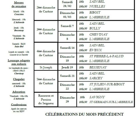 Les confessions sont possibles à la cure de L'Arbresle (sauf absence exceptionnelles des prêtres) :